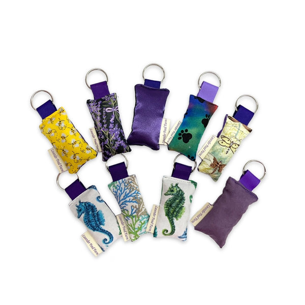Road rage be gone! Take your love of lavender on the go, literally, with these cute Lavender Sachet Keychains. Measuring approximately 1"x3" and filled with our all-natural lavender blend, just give it a squeeze the next time someone cuts you off to release a bit of lavender goodness into the air.
