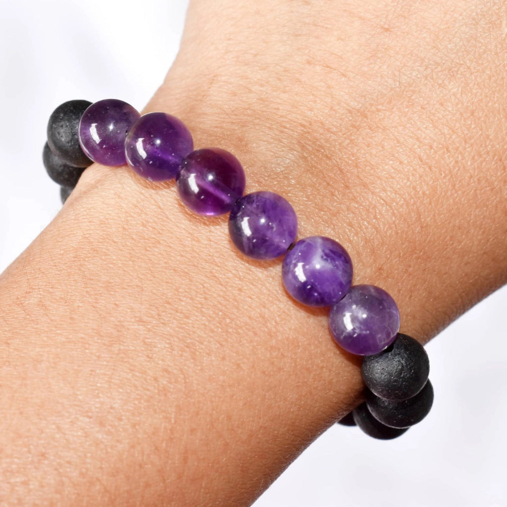 Amethyst Bead & Lava Stone Diffuser Bracelet