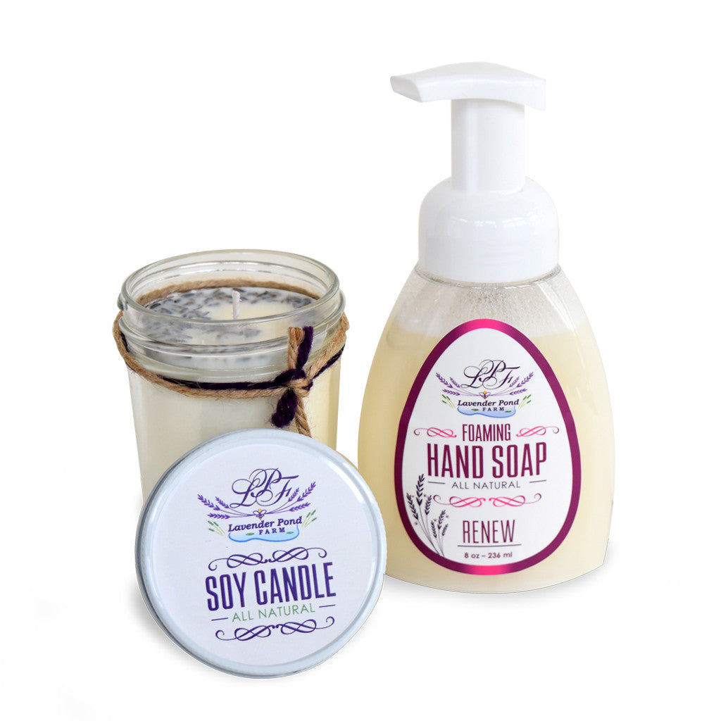 Forget the bottle of wine, give the gift of lavender bliss with this this luxurious Hostess gift set. Set includes our popular Foaming Hand Soap and a 8oz Lavender Soy Candle to burn the cares of the day away.