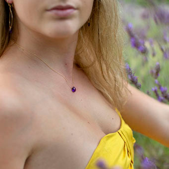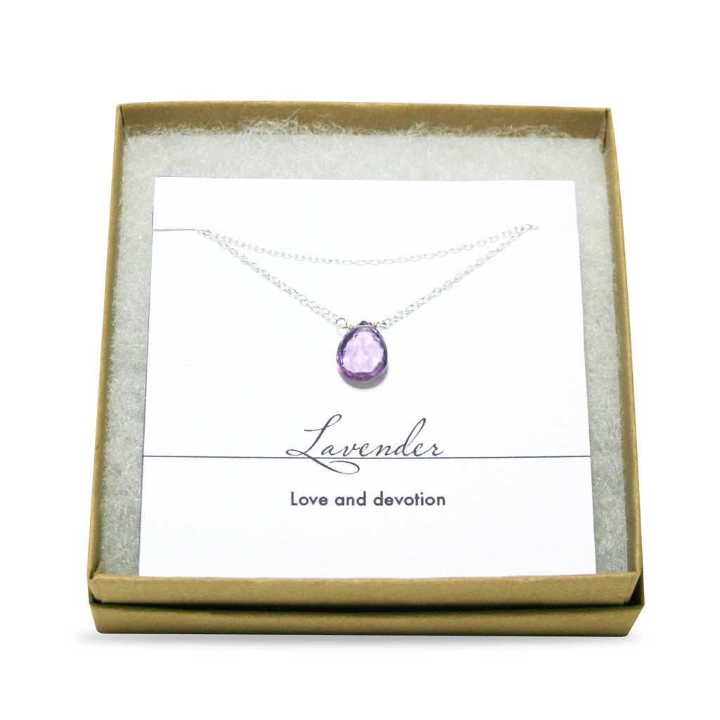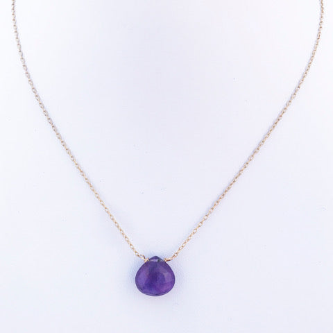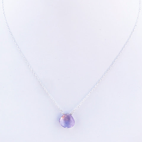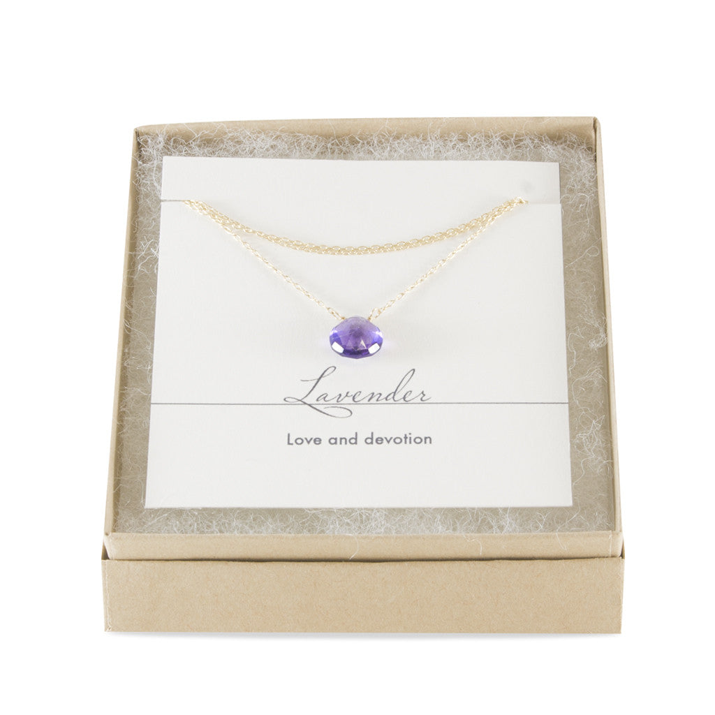 This Lavender Heart Necklace is sure to please. Your choice of a faceted light or dark Amethyst heart on an 16" gold-filled or sterling silver chain.