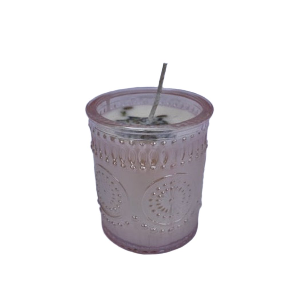 A beautiful trio of lavender scented soy candles. Each embossed glass votive is a different shade of soft pastel colors: lavender, pink and green. As always, we use soy wax and cotton wicks for a nice clean burn!